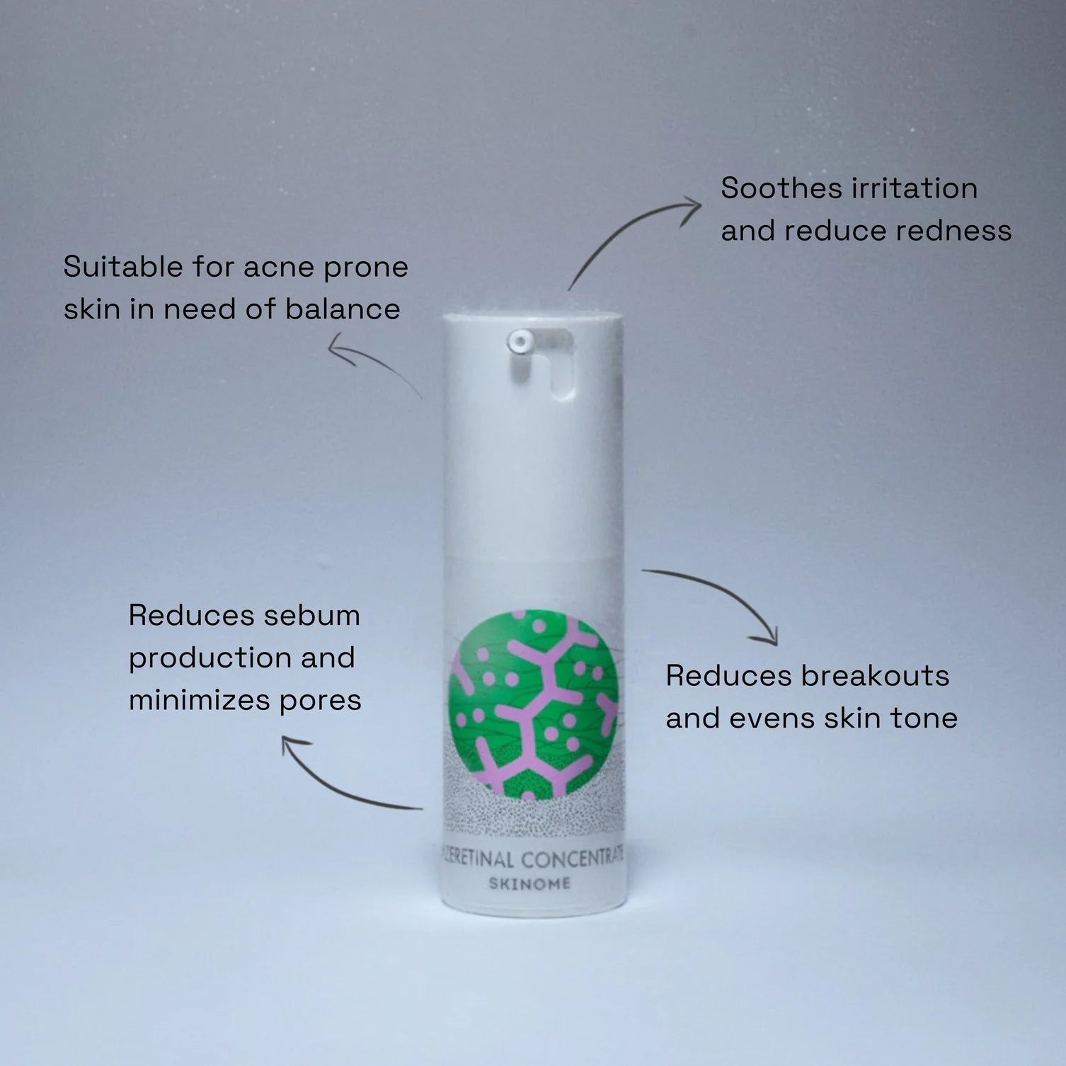 Retinal stimulerar hudens cellförnyelse medan azelainsyra balanserar aknerelaterade bakterier och minskar irritation.