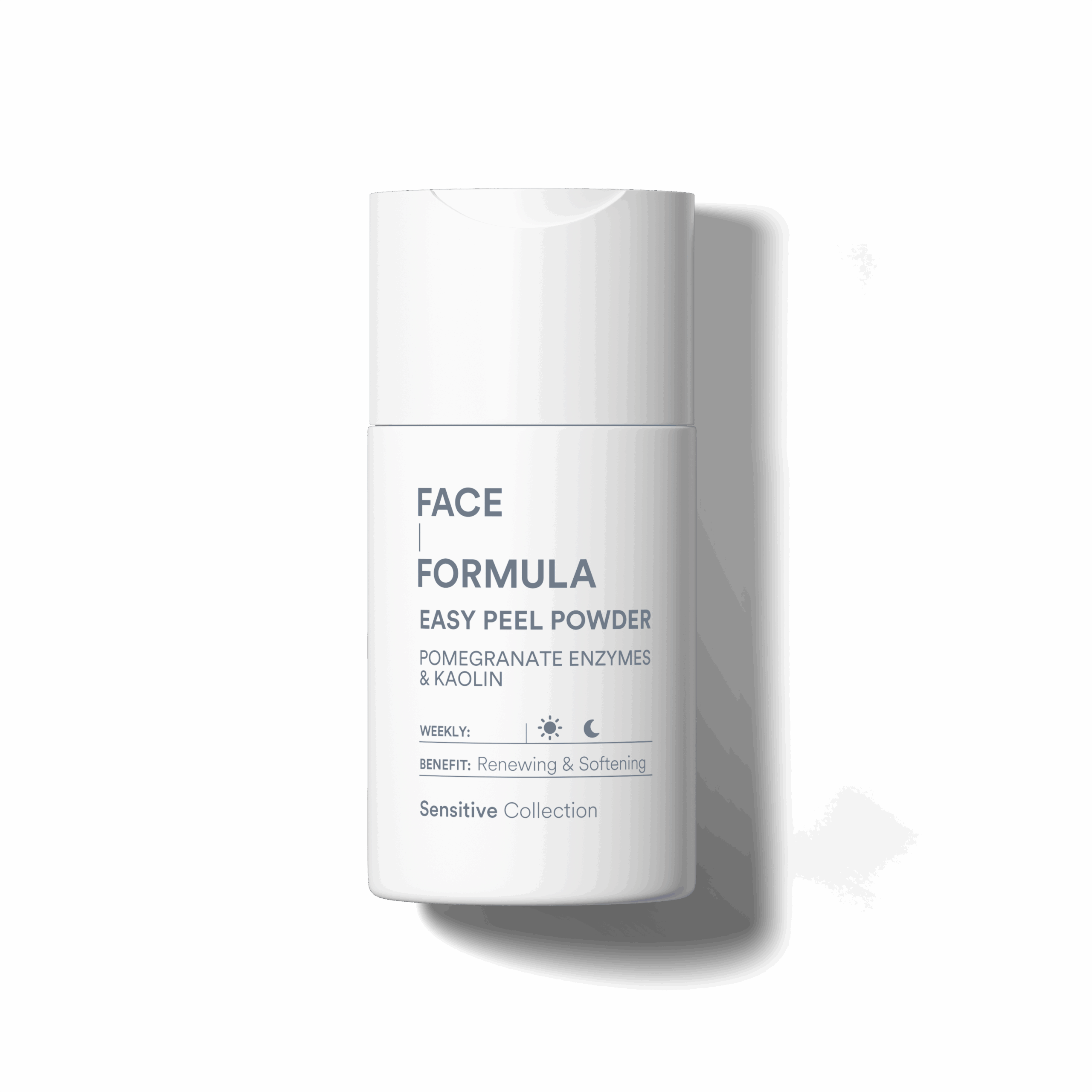 Face Formula Easy Peel Powder är en mild och lättanvänd peeling som du enkelt blandar med vatten till ett skum anpassat efter din hud. Med BHA-syra (salicylsyra) löses tilltäppta porer upp och inflammationer minskar. Kaolinlera rengör djupt och absorberar överflödigt talg, perfekt för fet hud. Berikad med fermenterade probiotiska extrakt som stärker hudens mikrobiom och barriär. Resultatet är en balanserad, klar hud med jämnare ton och ökad lyster. Passar alla hudtyper, även känslig hud.