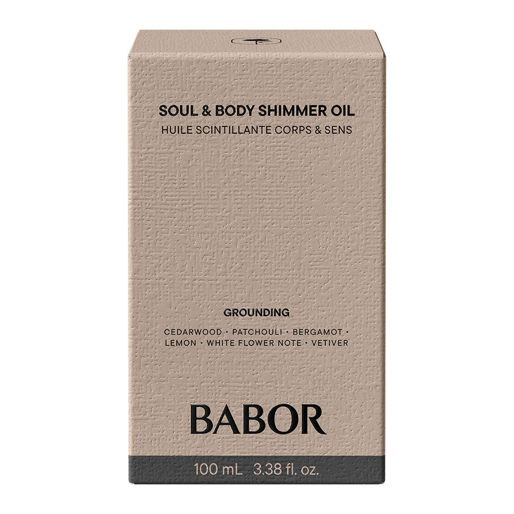 BABOR Soul & Body Shimmer Oil Grounding är en lyxig body shimmer oil som ger huden en naturlig lyster samtidigt som den vårdar och lugnar sinnet. Med cederträ, patchouli, bergamott, citron och vetiver sprider den en varm, jordnära doft som främjar inre balans.
