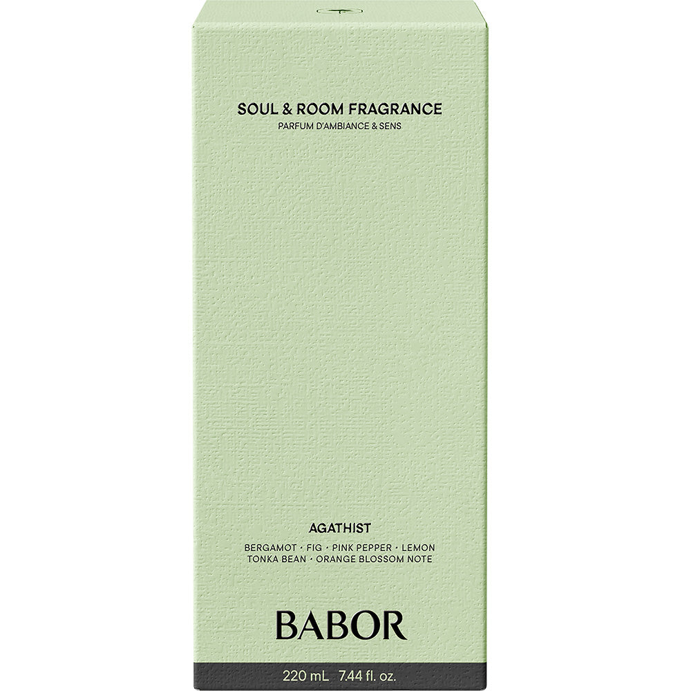 BABOR Soul & Room Fragrance Agathist är en upplyftande och energigivande rumsdoft skapad för att stärka sinnena och höja välbefinnandet. Fräscha noter av bergamott, grapefrukt och fikon möter blommig jasmin och varm cederträ. Den eleganta doften sprider en positiv och harmonisk känsla i flera månader.